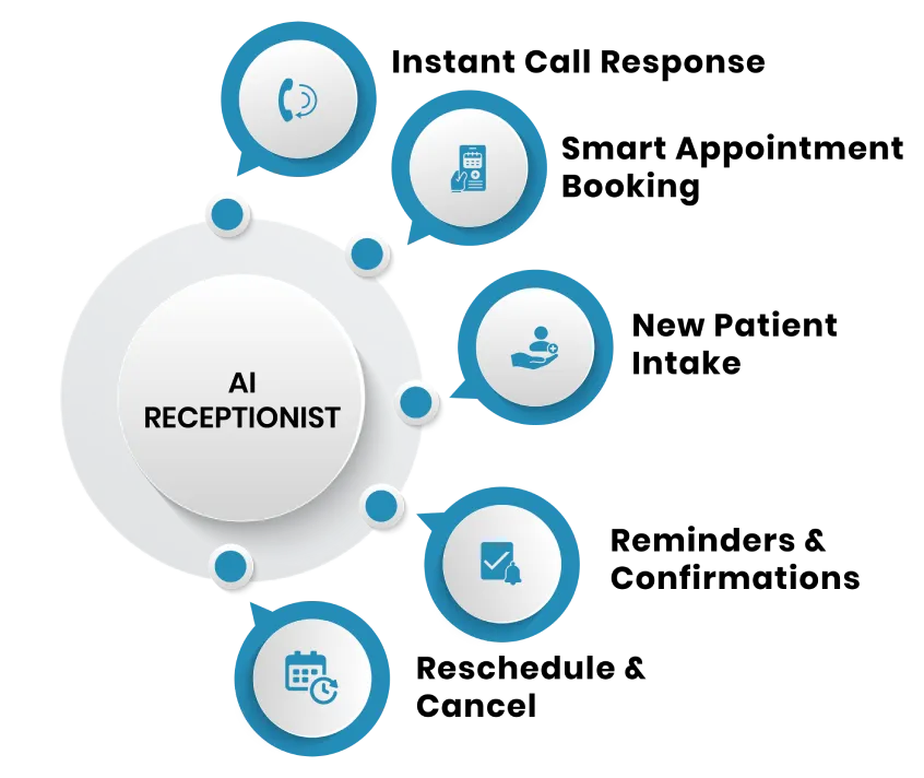 It takes over repetitive phone work: answering calls, responding to common questions, and managing appointments. That means fewer missed calls and less time spent on the phone by your team. The result is a more organized schedule and a calmer front desk.